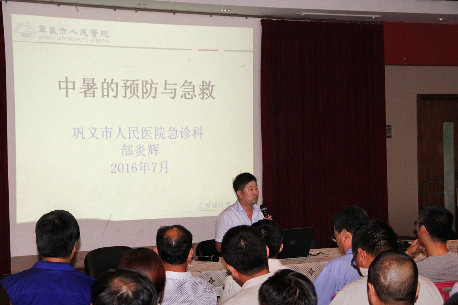 公司特別邀請(qǐng)了鞏義市人民醫(yī)院急診科主任郜炎輝來(lái)給大家進(jìn)行培訓(xùn)。郜炎輝主任通過(guò)PPT,圖文并茂地介紹了如何防暑、降溫以及中暑后的急救相關(guān)知識(shí),進(jìn)行了深入淺出地講解,深受公司員工的歡迎。