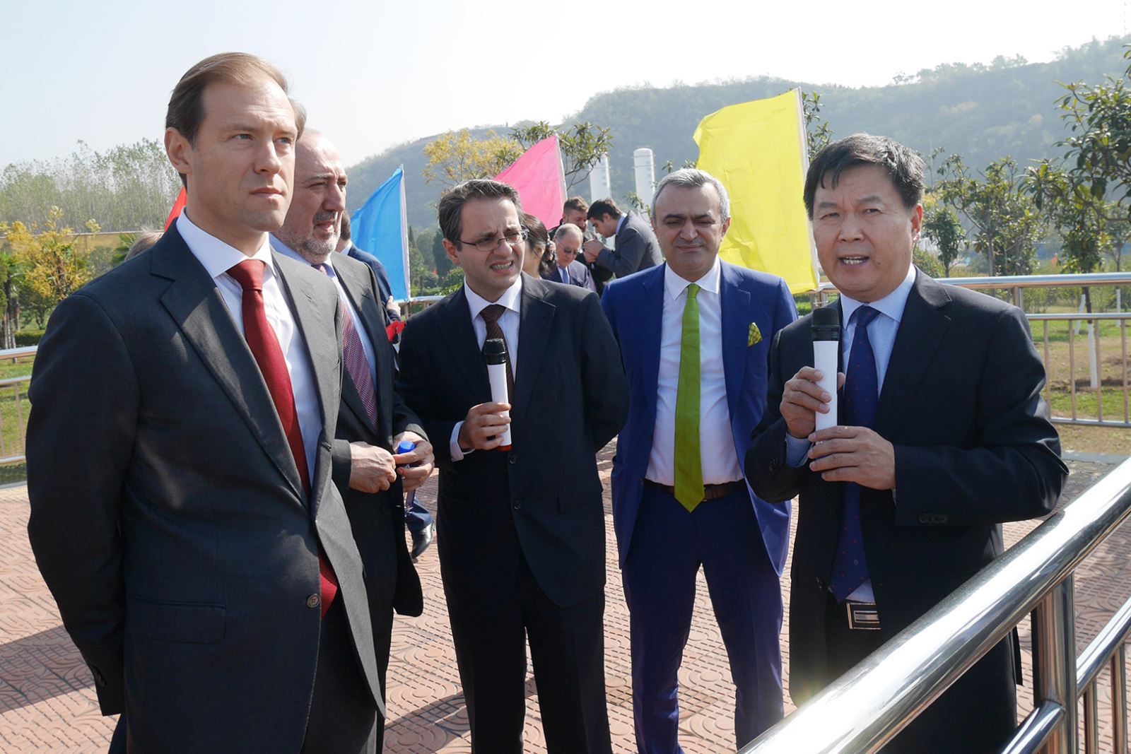 豫聯(lián)集團(tuán)董事長(zhǎng)賀懷欽向俄羅斯工業(yè)和貿(mào)易部部長(zhǎng)曼圖羅夫先生介紹企業(yè)轉(zhuǎn)型升級(jí)情況