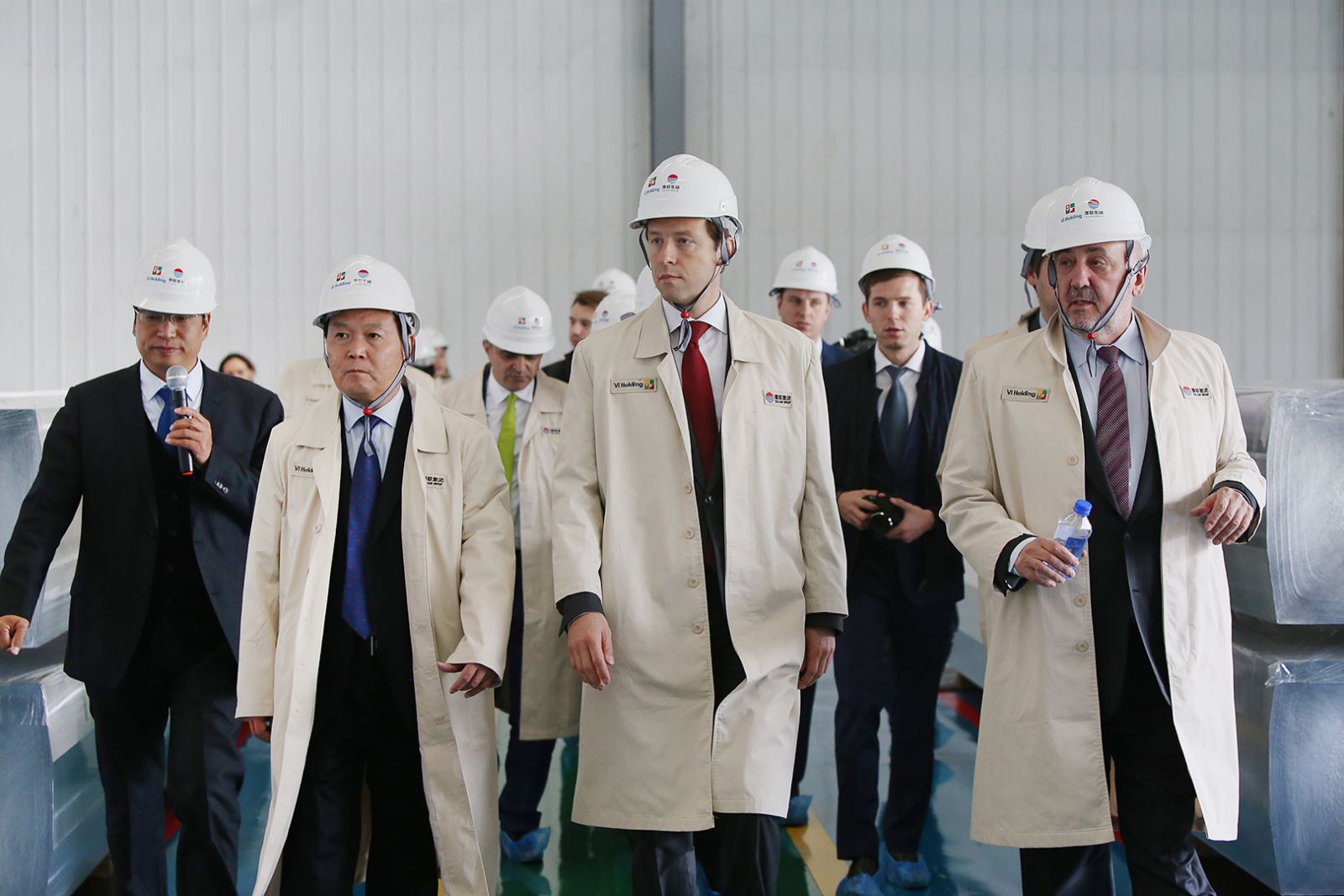 俄羅斯工業(yè)和貿(mào)易部部長(zhǎng)曼圖羅夫先生、Vi Holding公司總裁維塔利•馬欽斯基先生參觀豫聯(lián)集團(tuán)高精鋁生產(chǎn)線