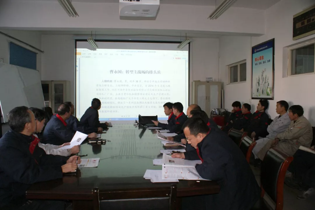 高精鋁四個支部分別通過政治學習,組織黨員學習曹永國先進事跡。生產現場各班組,利用班前會把曹永國同志的先進事跡傳達到每位員工。
