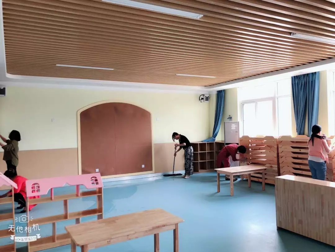 園區(qū)的財(cái)務(wù)部黨員同志到豫聯(lián)江南幼兒園進(jìn)行義務(wù)勞動(dòng),為小朋友們打掃教室衛(wèi)生。