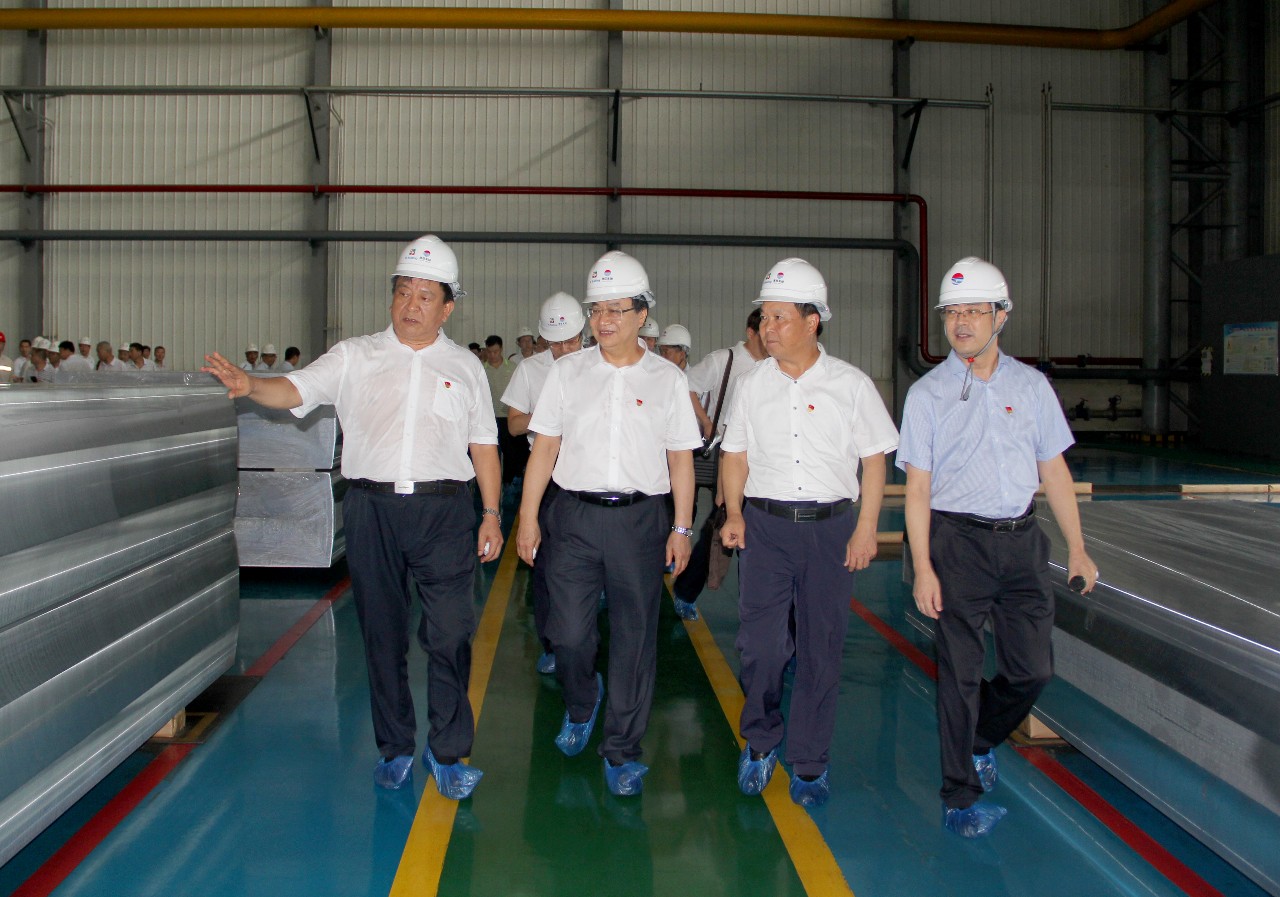 當(dāng)天下午,周富強(qiáng)書記一行冒著炎炎烈日,重點(diǎn)對集團(tuán)公司轉(zhuǎn)型升級項(xiàng)目高精鋁材公司生產(chǎn)現(xiàn)場進(jìn)行了調(diào)研。調(diào)研組一行興致勃勃地先后深入熔鑄、熱軋、冷軋生產(chǎn)現(xiàn)場,詳細(xì)詢問了產(chǎn)品的生產(chǎn)工藝、技術(shù)標(biāo)準(zhǔn)、產(chǎn)品用途和高端市場開發(fā)情況。在產(chǎn)品展示區(qū),周富強(qiáng)書記看到公司的產(chǎn)品被加工成易拉罐、車輪轂、筆記本電腦外殼、食品包裝鋁箔等產(chǎn)品時(shí),贊不絕口,對豫聯(lián)集團(tuán)轉(zhuǎn)型升級取得的成果給予高度評價(jià),并對戰(zhàn)高溫斗酷暑奮斗在一線的廣大員工進(jìn)行了誠摯的問候。