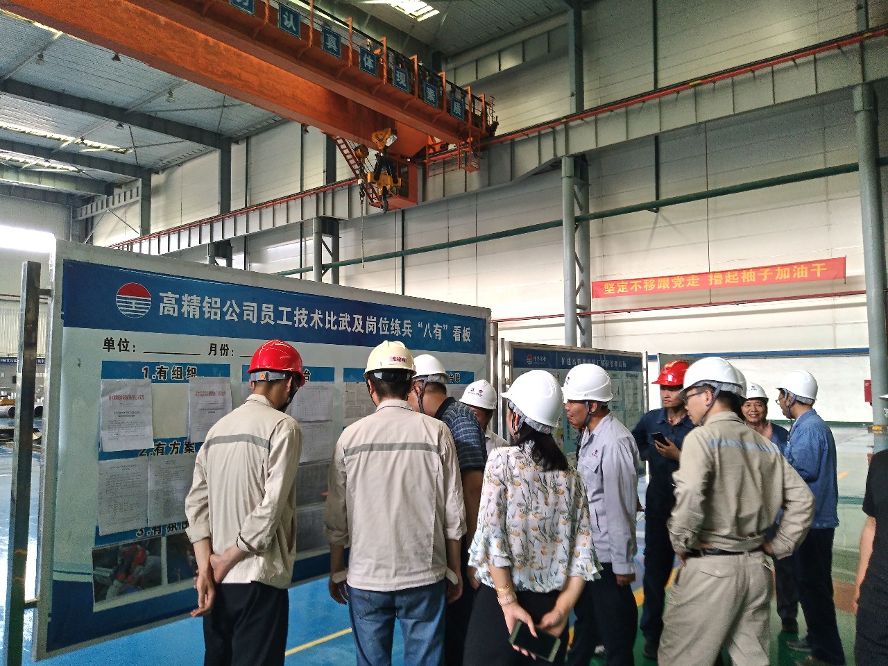 隨后,炭素公司、高精鋁公司分別以PPT形式匯報了本單位技術(shù)比武開展情況和典型做法;與會人員深入高精鋁公司冷軋現(xiàn)場進(jìn)行了觀摩。觀摩之后,其他單位也分別匯報了本單位技術(shù)比武開展情況、目前存在的問題、下步工作計(jì)劃和有關(guān)建議。