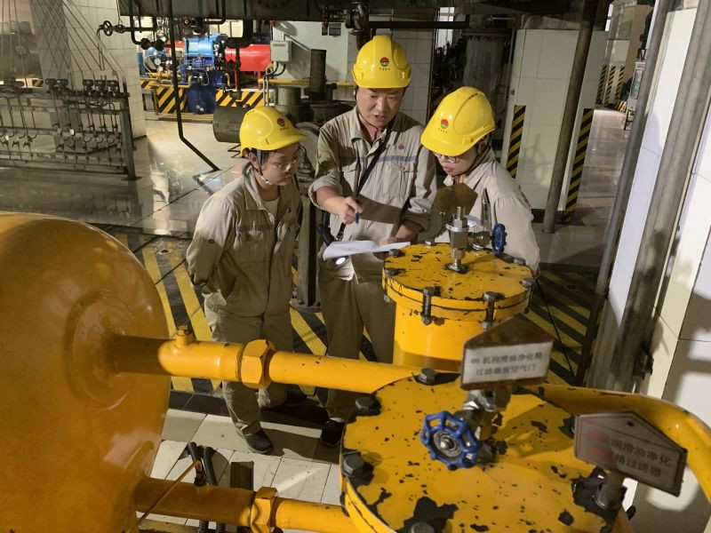 巡檢人員冒著驕陽烈日,一絲不茍地巡視現(xiàn)場設(shè)備,不放過任何可能造成設(shè)備異常的安全隱患。各專業(yè)工程師深入現(xiàn)場,了解設(shè)備運行情況,協(xié)助指導(dǎo)運行工作。