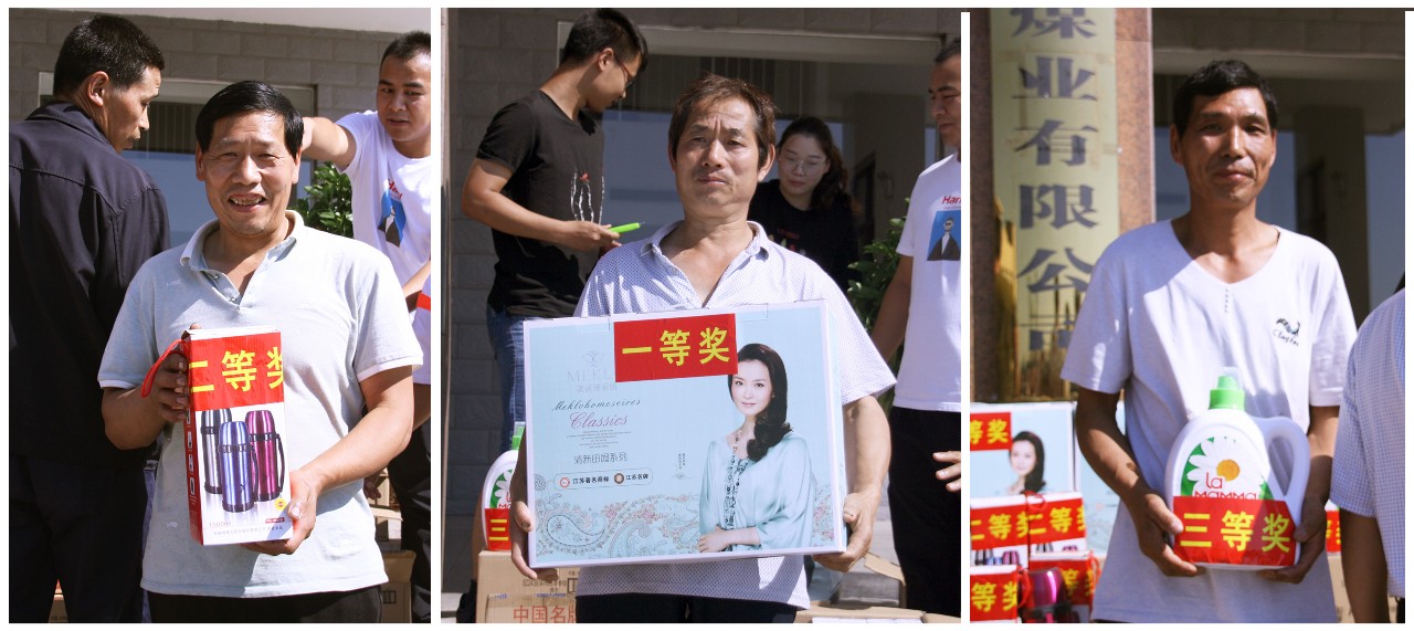 摸獎活動開始了,現(xiàn)場1300余名煤礦員工依次排隊抽獎,欣喜地領到了自己的獎品。