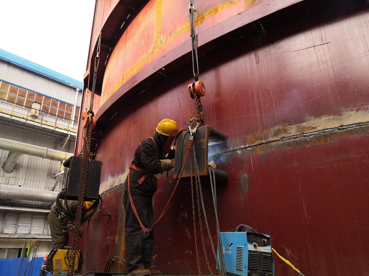 安裝隊進場后,韓劍英主要負責吸收塔安裝工作。安裝初期,受磁場影響,所有環(huán)焊縫均無法焊接,吸收塔無法起層。為解決此問題,韓劍英查閱了相關資料,結合實際設計制作了消磁裝置,多次試驗并不斷改良后,最終成功制作出了有效的消磁器,解決了磁場干擾問題,焊接工作順利進行,目前吸收塔安裝工作有條不紊推進中。